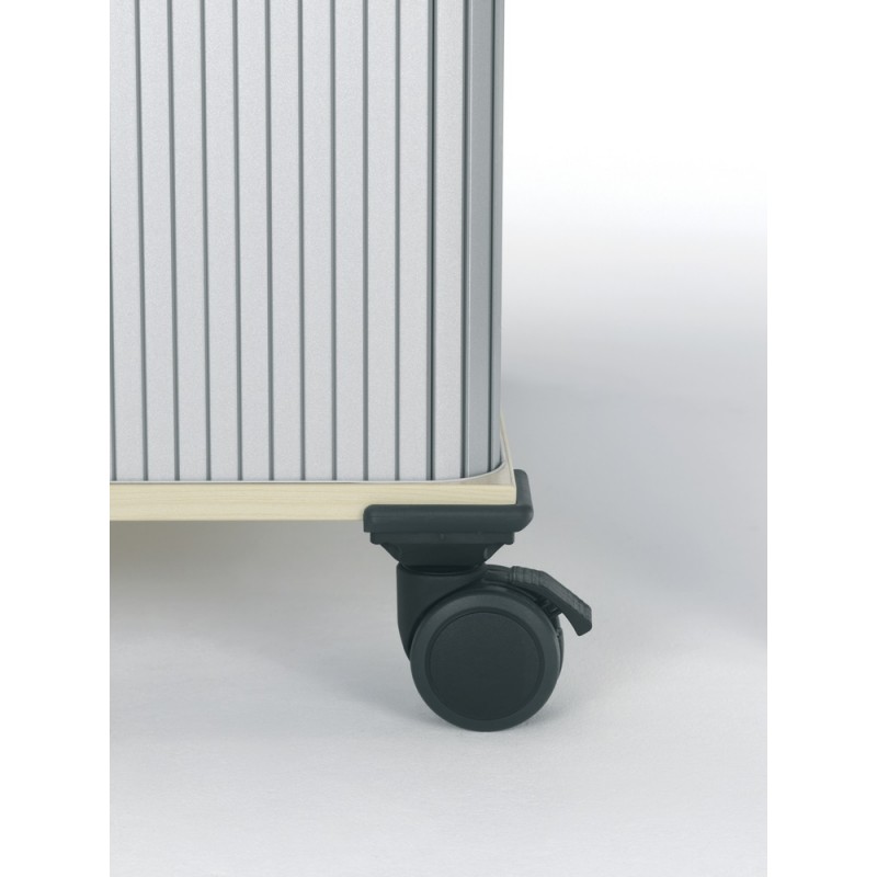 • 4 große Doppel-Lenkrollen, 2 davon feststellbar, an stabilem Stoßpuffer montiert