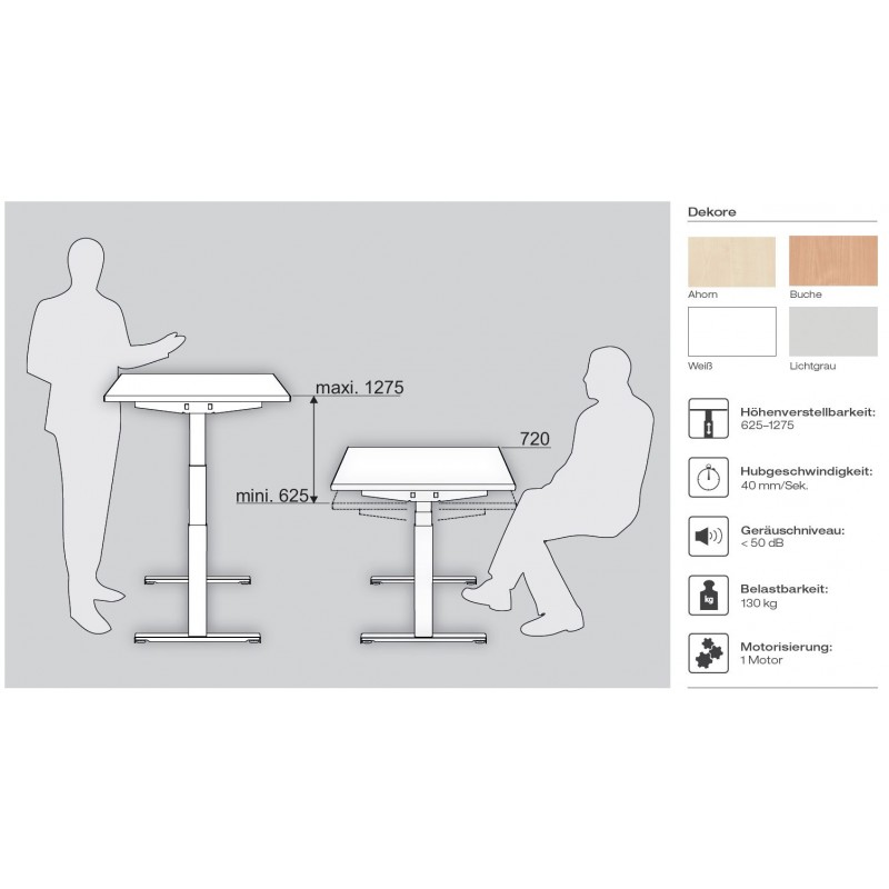 • Belastbarkeit: 130 kg mit der Tischplatte