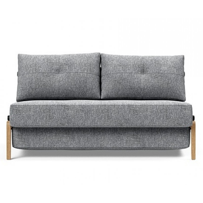 Cubed mit den Formfüssen Chrom, Aluminium oder Eiche ist ein platzsparendes Schlafsofa, das sich den Herausforderungen des urbanen Lebens anpasst, indem es in den Raum ausgeklappt wird und effektiv wertvollen Platz spart.
