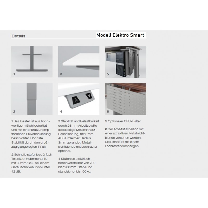 • Höhenverstellbarer Arbeitstisch mit Teleskop- Motoren (Norm- + Qualitätsgeprüft)