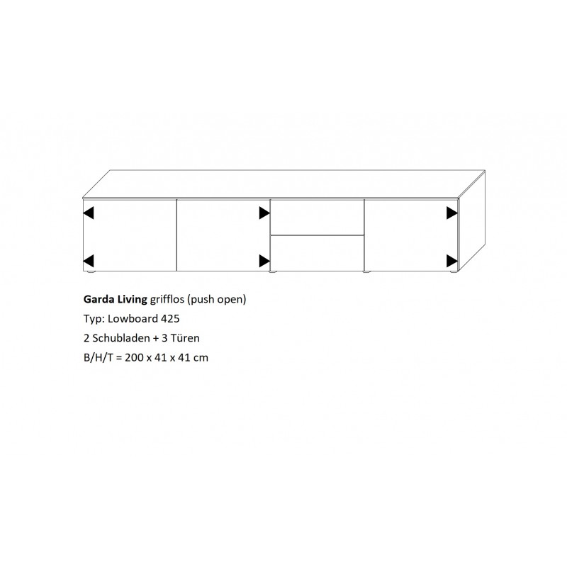 Lowboard Garda 425 ohne Griffe (mit "push to open" Funktion)