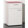 • Korpus Komplett montiert mit 1 Schublade und 1 Türe mit Fachboden, inkl. Kst.Fussgleiter schwarz