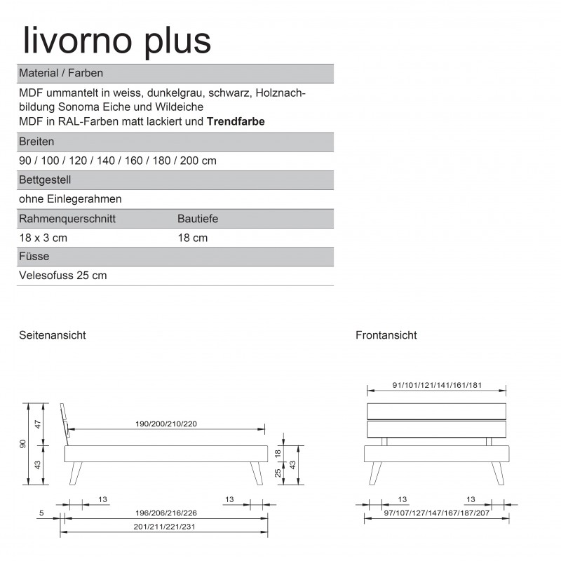 Livorno Plus mit Kopfhaupt Vito Plus Bett