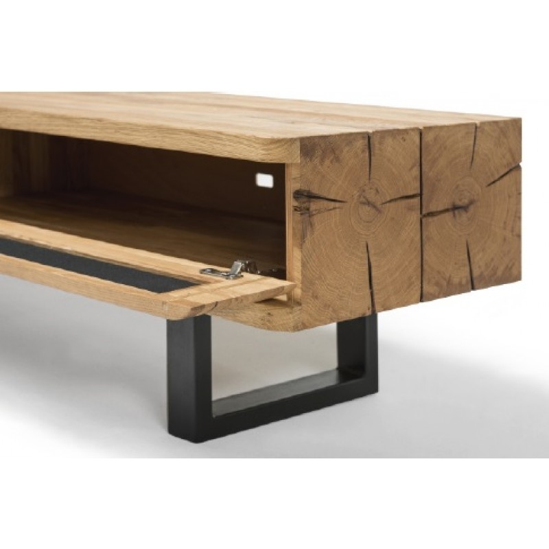 Designermöbel online, Modernes Wohnen Wohnzimmer, Whiteoak TV - Möbel TYKO, Eiche Massivholz mit Balkenfuss