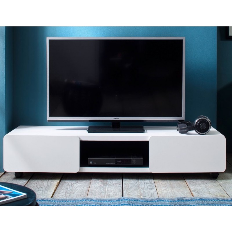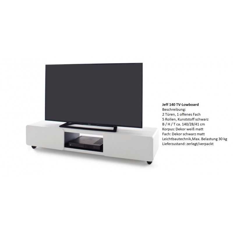 Jeff 140 Beistell- TV-Möbel / TV-Unit weiss/schwarz mit Räder von MCA Furniture