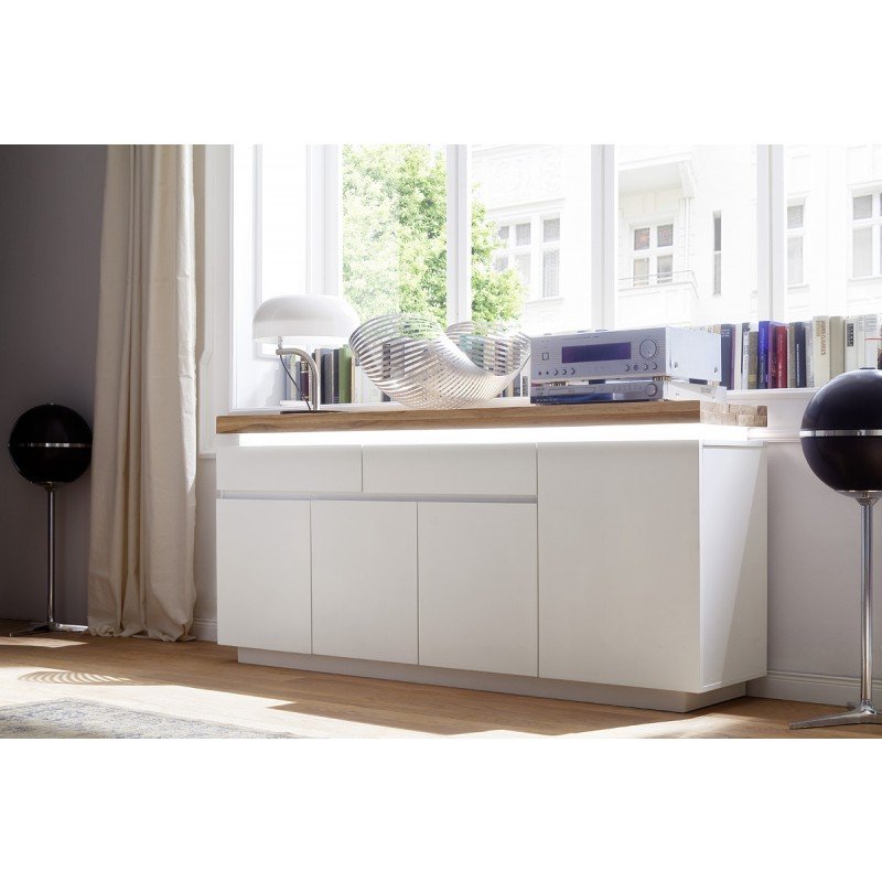 Modernes Wohnen Wohnzimmer, Romina ll / Roble, MCA Furniture, Sideboard weiss lackiert mit Eiche Abdeckung/ Kommode T4, Room05