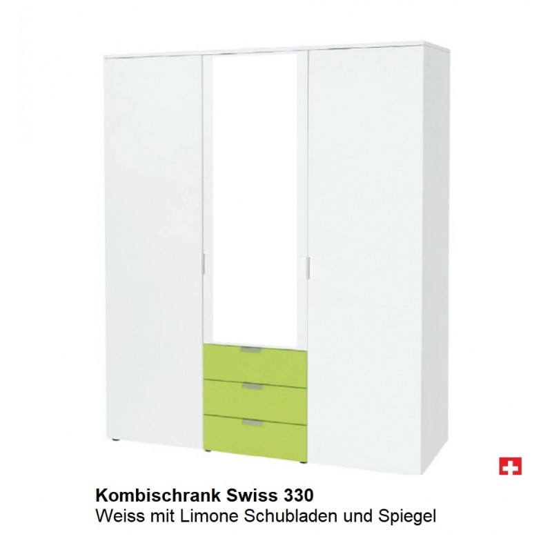 Bläuer / Swiss Quality Kleiderschrank,  3-Türig mit 3 Schubladen Mitte, Möbel online kaufen