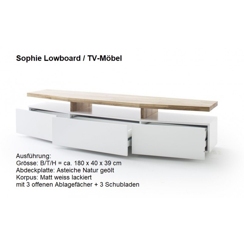 Sophie Furn, Asteiche/ Matt weiss, Modernes Wohnen Wohnzimmer, MCA Furniture Tv-Möbel / Lowoard