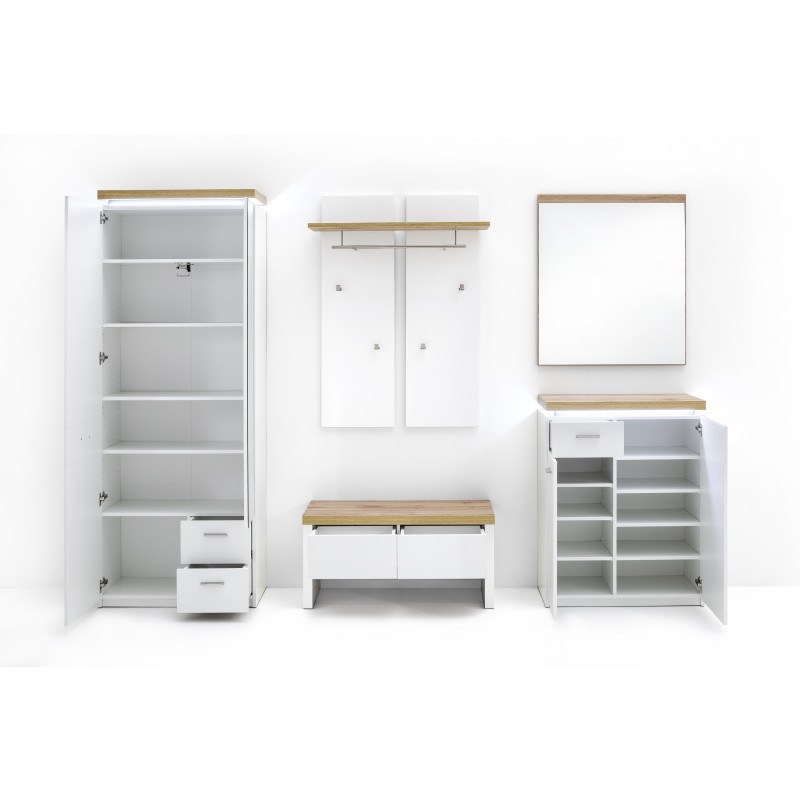 Young Style Cali Garderobe Weiss / Eiche Dekor, Modernes Wohnen Wohnzimmer Möbel Empfangsbereich, Foyer Möbel weiss von MCA Furniture, Garderobe online kaufen Schweiz