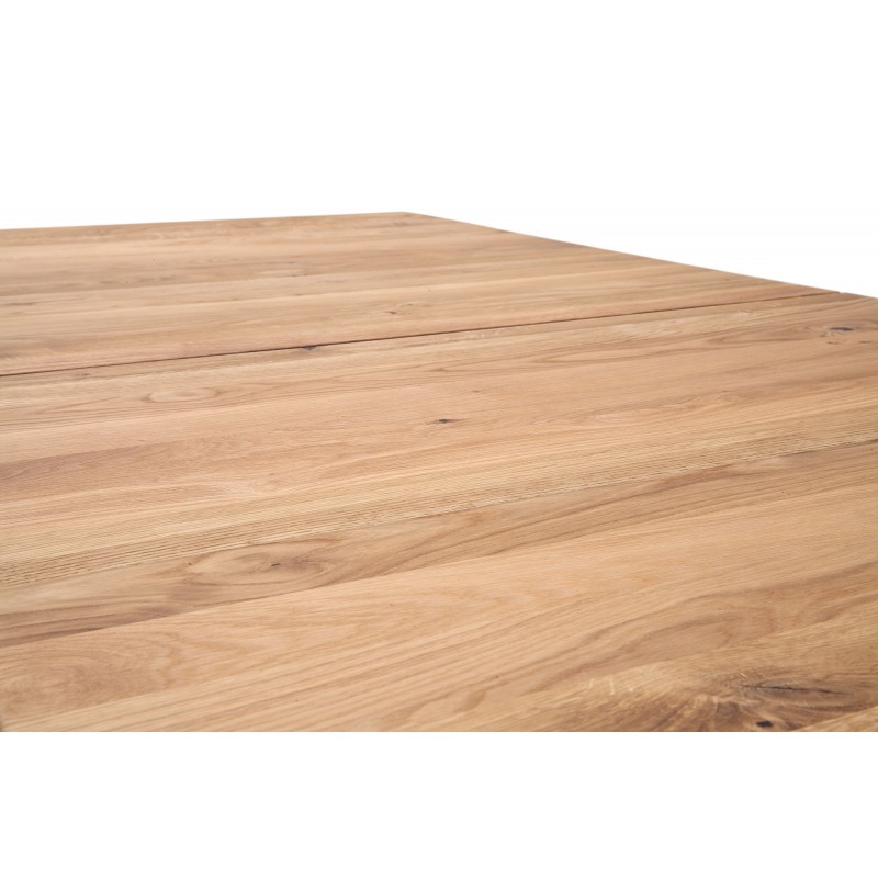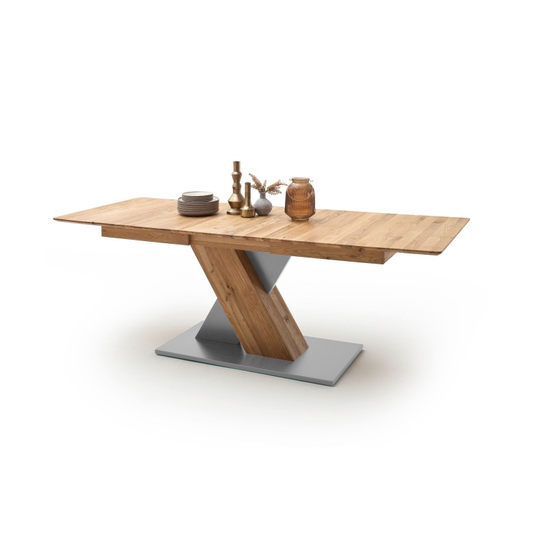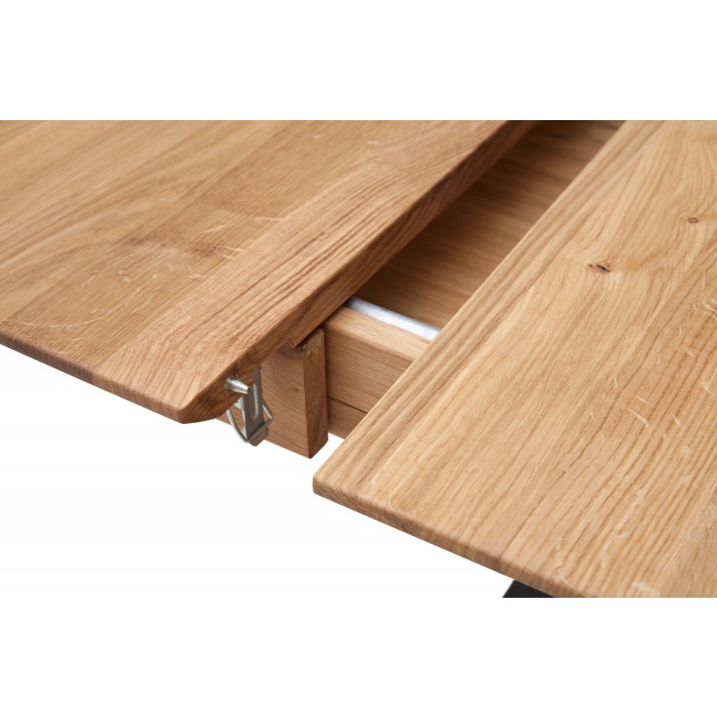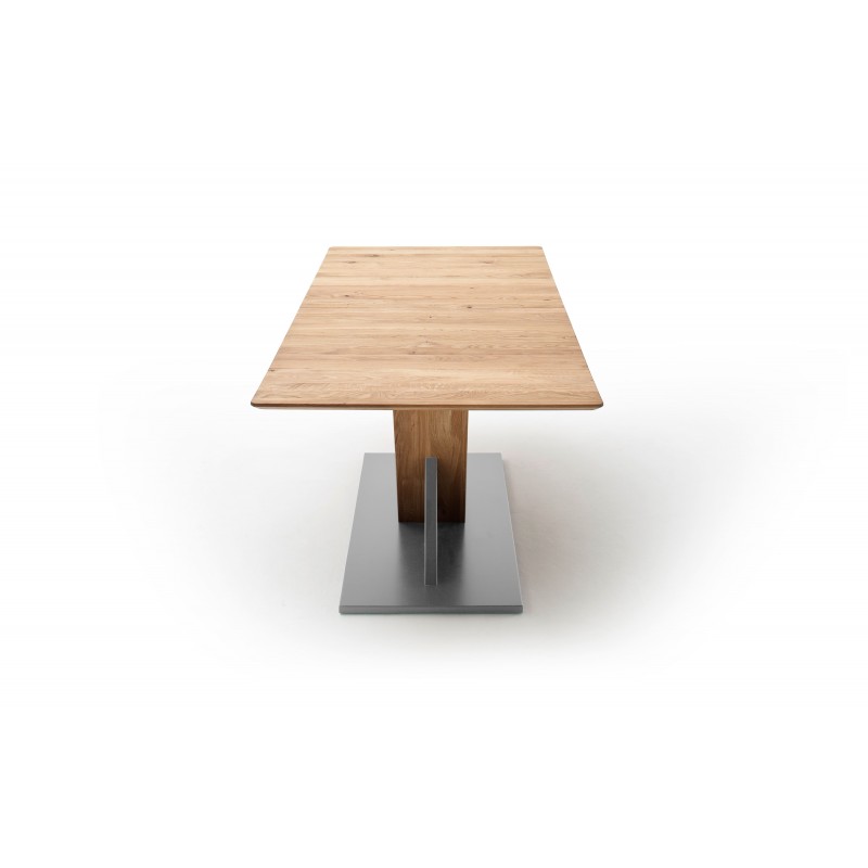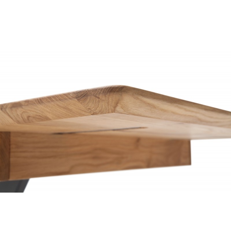 Tischplatte: Eiche Massivholz, 25 mm, mit Schweizerkante, Holzlauf quer.