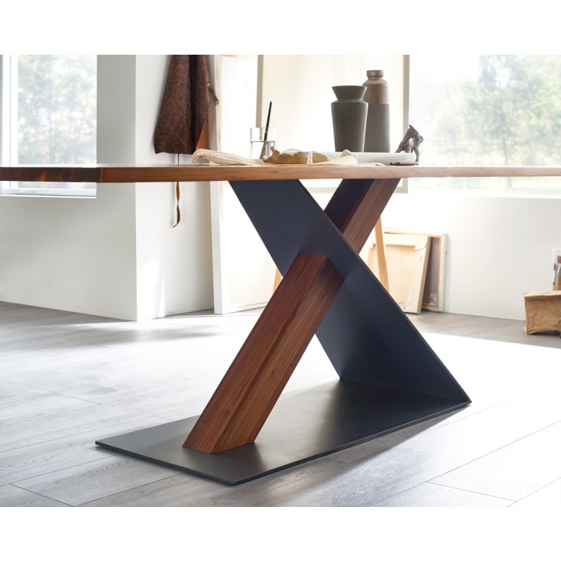 Säule: X-Form, Mix = Massivholz / Metall RAL 7021