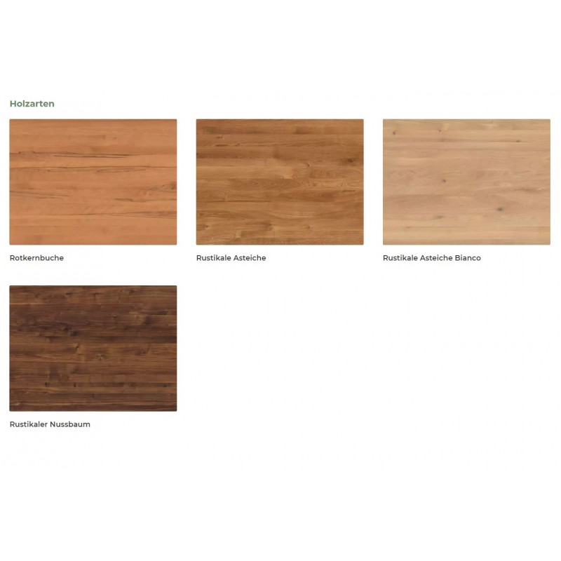Holzarten: Rotkernbuche Natur geölt, Rustikale Asteiche Natur geölt, Rustikale Asteiche BIANCO beölt, Rustikaler Nußbaum Natur geölt