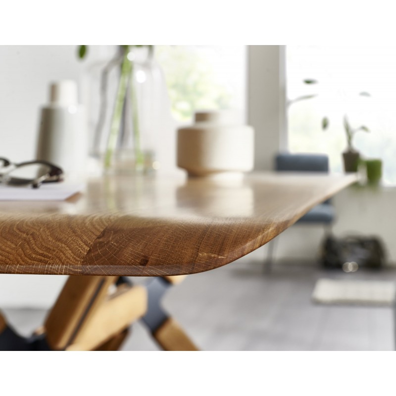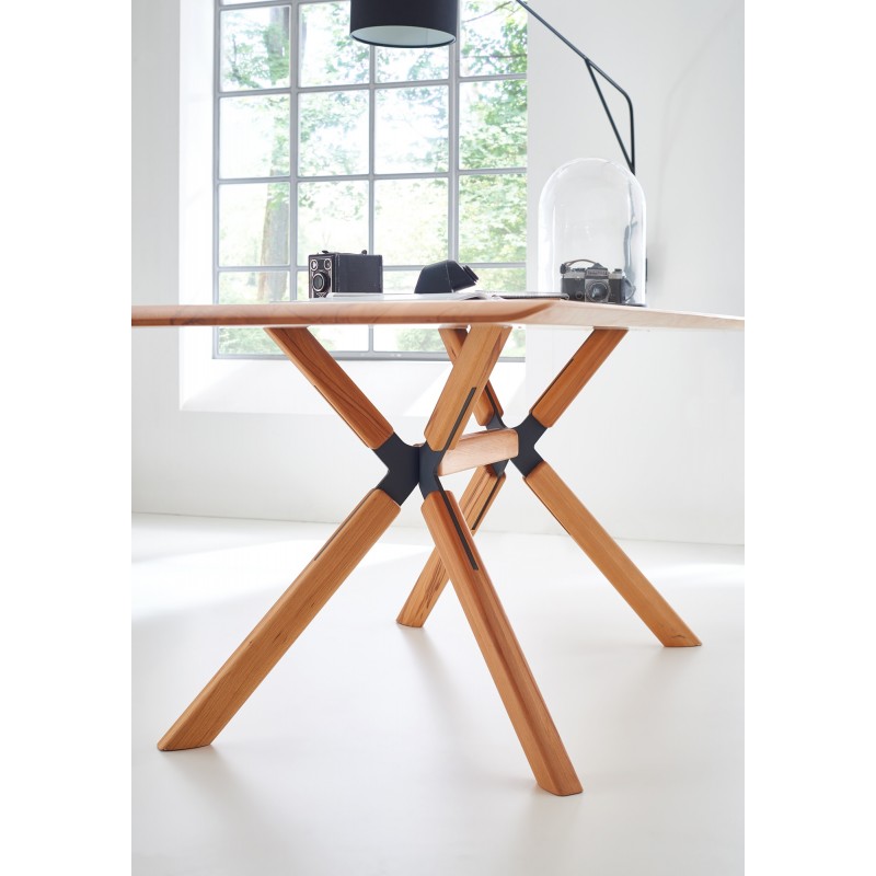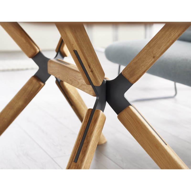 Kreuzfuss: Massivholz mit Verbindungsbeschägen Metall, RAL-Farbe Schwarzgrau, RAL7021